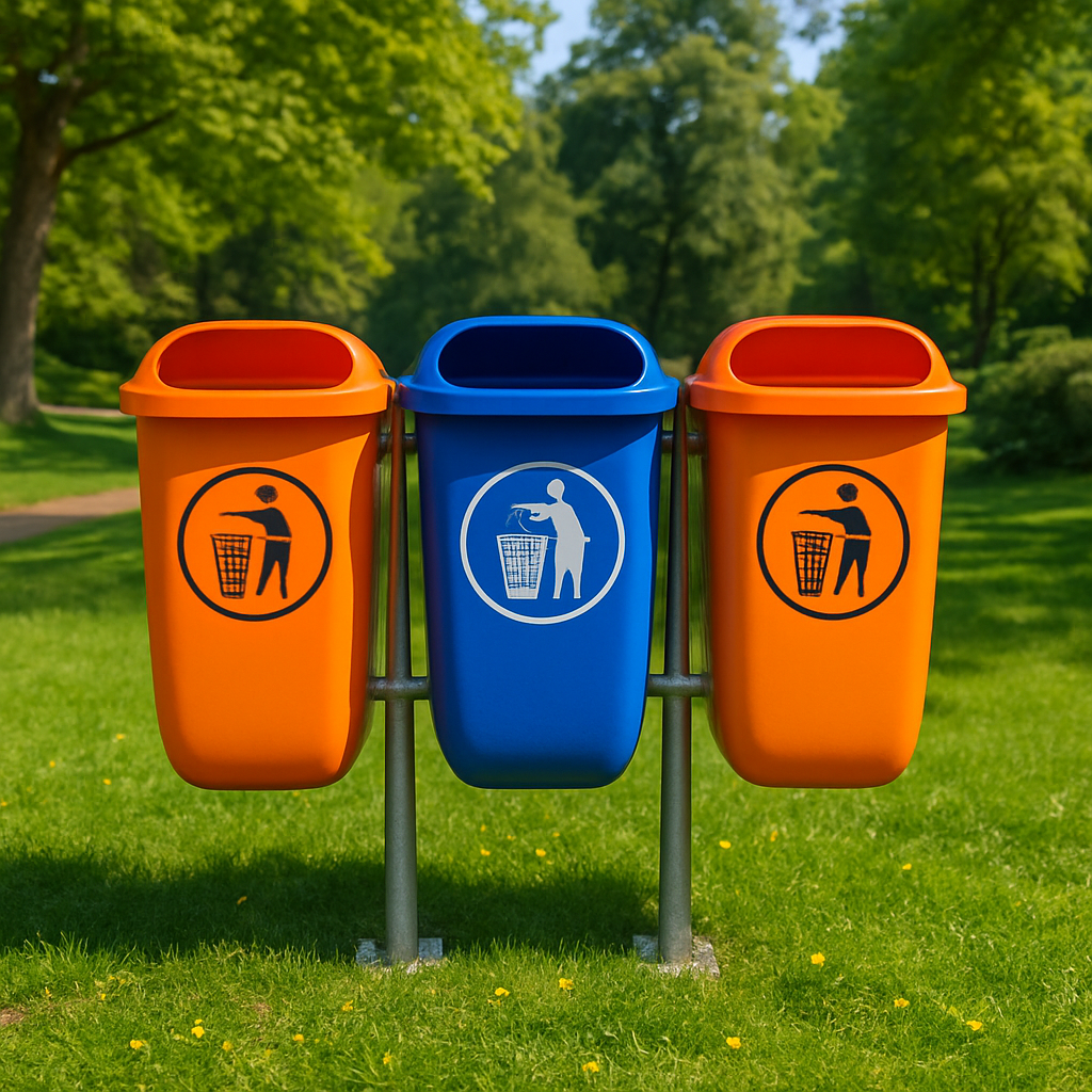 Designed for public outdoor environments, the GB WM 50 is a compact, durable waste bin with a 50-liter capacity—perfect for parks, playgrounds, schoolyards, and open spaces. This triple-unit setup promotes effective waste segregation with clearly color-coded bins and universally recognized disposal icons. Crafted from high-quality UV-resistant plastic, the bins are supported by a galvanized steel frame that offers stability and long-term corrosion resistance. Easy to clean and maintain, each bin is lightweight yet impact-resistant, making them ideal for high-traffic outdoor use. The ergonomic open-top design ensures user-friendly access without contact, enhancing hygiene in public spaces.